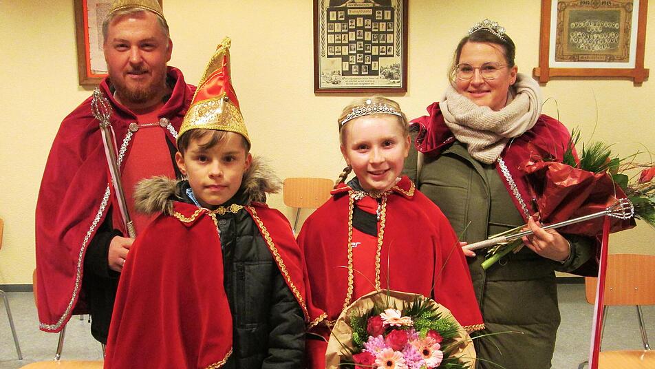 Auch Gemeinderat Hartmut Vierle geriet in die Schusslinie. "Hetz ihn und seine Bienen uns bloß nicht auf den Hals", baten die Närrischen mit der Begründung: "Seitdem der beim Landkreis als Breitband-Beauftragter angestellt ist fliegen seine Bienen mit LTE (4G-Netz)". Hacks Antwort: "Lasst mir bloß meinen Hartmut in Ruhe. Als Internet-Pionier hat der uns vernetzt wie noch nie. Mir wisse vor lauter Glasfaserleitungen gar nix mehr, wohin mit Wasser und Abwasser". Bevor die Narren sich den Amtssitz zu eigen machten, krönten sie noch ihr neues Prinzenpaar und das Kinder-Prinzenpaar. Die neuen königlichen Hoheiten sind Gemeinderat Manuel Kolb als "Man-U" bekannt und Gattin Marlene. Als Kinder-Prinzenpaar grüßen Felix und Mia. Dann war Schluss mit lustig. Der Amtsinhaber musste nach einigen Kanonenschüssen dann doch den Schlüssel an einem Seil herablassen und die Kasse aushändigen, damit der Fasching ins Rathaus kommt und die Narren endlich feiern konnten.