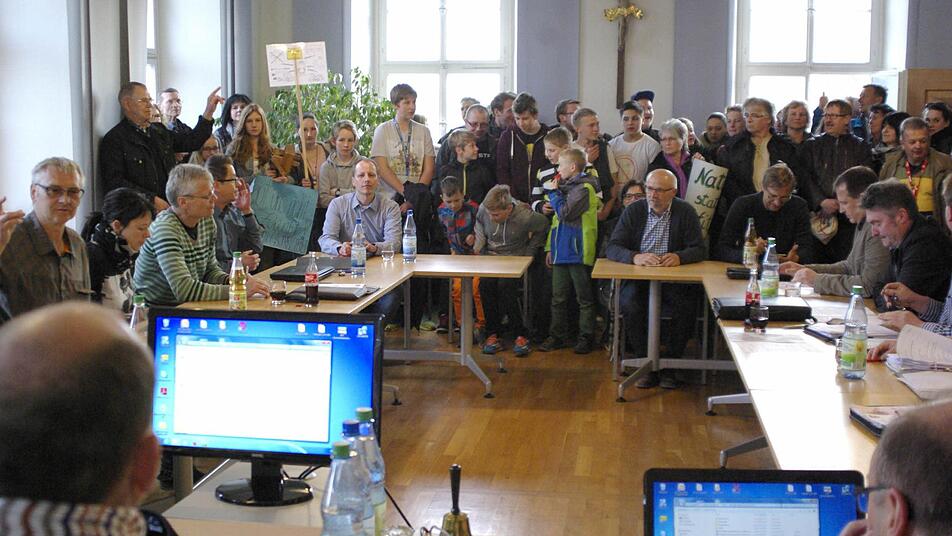 Über 100 Bürger haben den Gemeinderat im Schlosshof empfangen und ihren Unmut über die umstrittenen Pläne zum Ausdruck gebracht. Auf Antrag von Gemeinderat Alfons Hausmann hat das Gremium die Entscheidung vertagt.