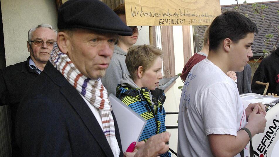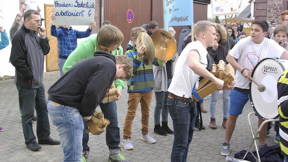 Den Gemeinderat, der gegen 19 Uhr von einem Ortstermin zurückkehrte, erwartete im Schlosshof ein "heißer Empfang". Weit mehr als 100 Bürger - meist aus Langendorf und Machtilshausen - erwarteten das Gremium mit Transparenten, Frankenfahne und Protestplakaten, untermalt vom Lärm einer Pauke, Pfeifen, und Karfreitags-Ratschen.