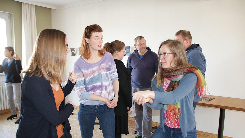 Seit rund 20 Jahren verbreitet sich  das Genre Improvisationstheater, kurz Impro, auf der ganzen Welt. In Würzburg gab es von Anfang an eine aktive Szene, beginnend mit den "Beutelboxern", 2002 fand das erste internationale Improtheater-Festival statt. Das hat auch Lena Försch aus Neubrunn bei Würzburg geprägt. "Mit 15 Jahren habe ich angefangen", erzählt die 29-Jährige. Mittlerweile hat sie ihr Hobby zum Beruf gemacht: Sie studierte Sprecherziehung und Sprechkunst, leitet mit einer halben Stelle das Würzburger Improtheater-Festival und ist als Coach weltweit unterwegs: "Ich war gerade sechs Wochen in Dubai, davor in Kolumbien", erzählt sie in der Pause eines Workshops im Ramsthaler "Haus Erlebenskunst".
