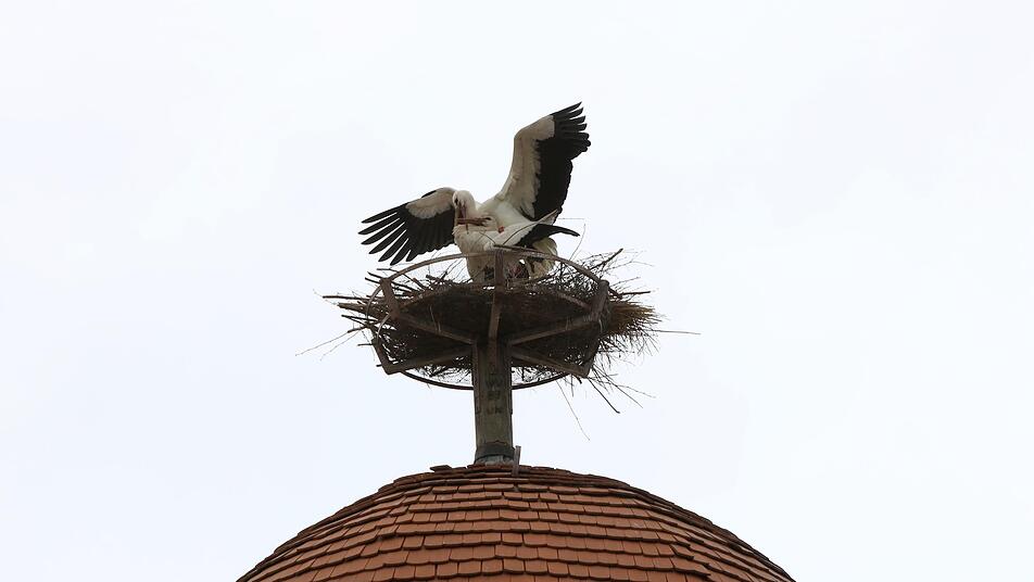 Zum ersten Mal seit drei Jahren haben sich auf dem Hammelburger Mönchsturm wieder Störche niedergelassen.