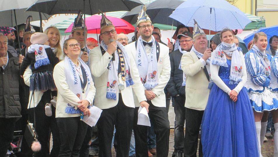 Mit dem Rathaussturm eröffnete die Hammelburger Karnevals-Gesellschaft (HA-KA-GE) die aktuelle Faschingssession. Zwar im Regen dennoch eine "Punktlandung" am 11.11. um 11.11 Uhr, die selbst langjährige Fastnachtstrategen noch nicht erlebten.