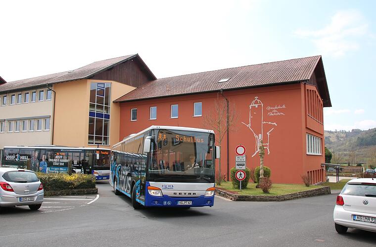 Rund 300 Schüler besuchen aktuell die Mittelschule, weitere rund 360 die Grundschule. Die Fahrschüler unter ihnen werden mit fünf Linien gebracht und geholt, eine weitere Linie verbindet die beiden Schulen in der Nähe der Innenstadt mit dem Schulzentrum in der Von-der-Tann-Straße. Im Rahmen des Neubaus der Friedhofstraße wurde bereits vor Jahren eine provisorische Haltstelle angelegt, auf dem einzelne Busse halten. Die meisten fahren jedoch durch die Friedrich-Müller-Straße direkt in den Pausenhof der Grundschule.
