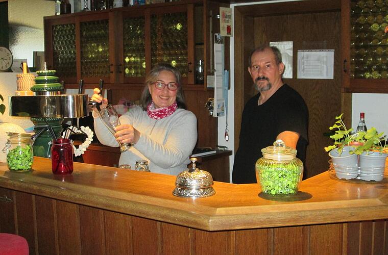 Pächterin Konstantina Theocharopoulos und Konstantinos Manolis bieten wegen des Lockdowns derzeit zunächst einen Abhol- und Lieferservice an.