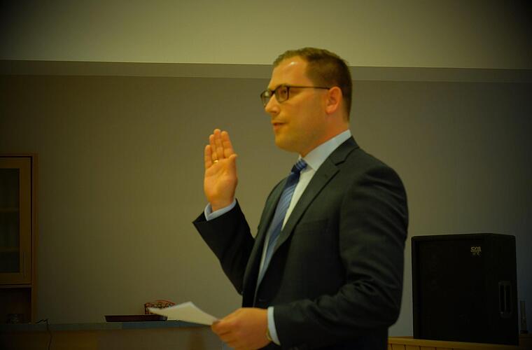 Allen voran schwor der neue Bürgermeister Florian Atzmüller seinen Amtseid. Nur zwei der 15 Gemeinderatsmitglieder sind aus dem alten Bestand, nämlich der bisherige zweite Bürgermeister Roland Brönner (WG Schwärzelbach) und Gabriel Vogt (WG Dittlofsroda). Von dort kommt neu Andreas Hänelt.