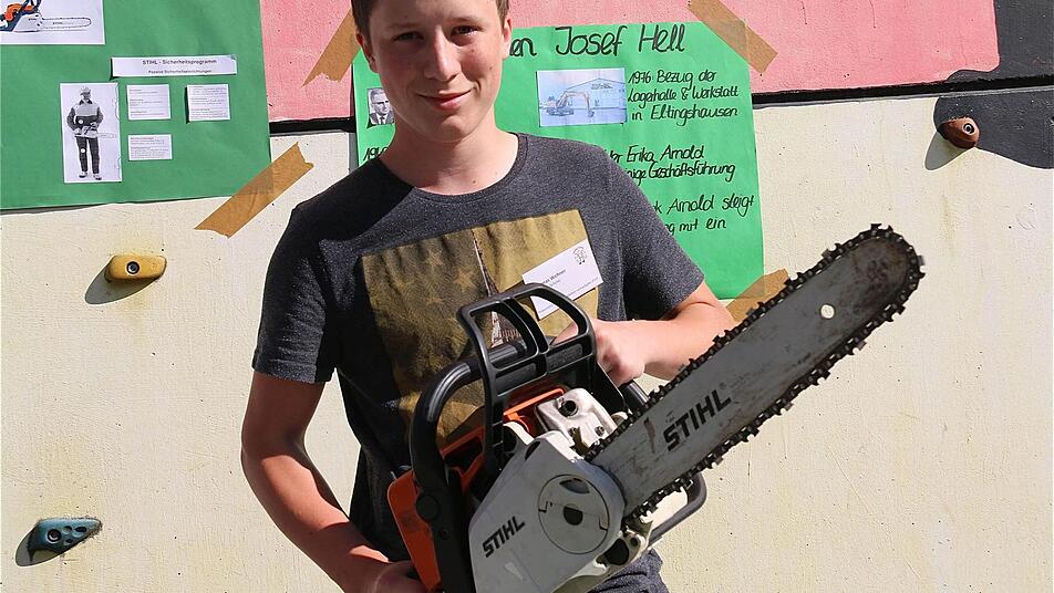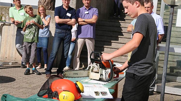 Sie praktizierte in der KiTa St. Andreas Wartmannsroth und berichtet begeistert über die Aktion "Vom Ei zum Küken", bei der ein Brutkasten zum Einsatz kam (wir berichteten). Von seinem Einsatz beim Bauunternehmen Josef Hell aus Eltingshausen erzählt Praktikant Jonas Wehner. "Mein Herz schlägt für die Maschinen", schwärmt er, und zeigt den Besuchern, wie die Motorsäge funktioniert.