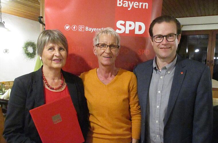 Nicht zuletzt wurde noch die langjährige frühere Stadträtin und amtierende Kreisrätin Ursula Müller-Ahammer für 35-jährige Mitgliedschaft in der SPD geehrt. Die Vorsitzende Karin Jordan dankte ihr für ihren langen und engagierten Einsatz für die Sozialdemokratie.