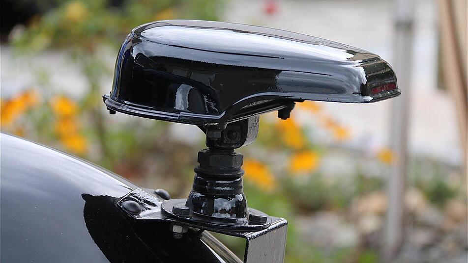 Aus den späten 1930er Jahren stammt der Wanderer W 26 von Heribert Keßler aus Hammelburg. Der Fahrzeugkoloss bringt aus sechs Zylindern mit rund 2,6 Litern Hubraum nur 62 PS. Dass das Auto auch in Kriegszeiten fuhr, beweist die auf dem Kotflügel angebrachte Tarnlampe.