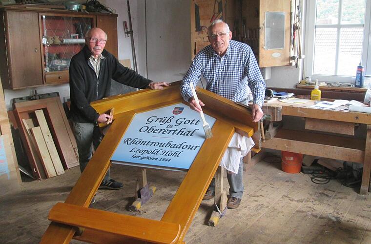 Frisch lackiert und mit einer Würdigung an den Rhöntroubadour versehen wurden die Begrüßungsschilder in Obererthal. Für die Renovierung eingesetzt haben sich Bruno Weigand und Hans Schönau.