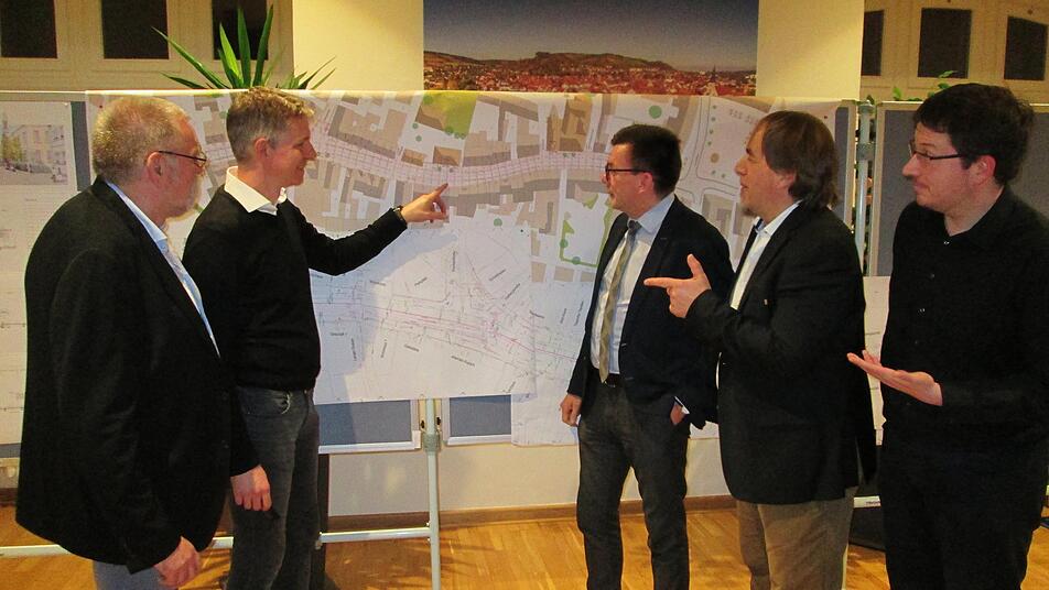 Im früheren Lebensmittelmarkt richtet Bauleiter Wolfgang Martin vom Ingenieurbüro Holm während der Bauzeit sein Domizil ein. Zuständig für den "Untergrund", referierte er zur Leitungsverlegung. Aufgeteilt in drei Bauabschnitte, beginnen die Arbeiten an der Einmündung am Marktplatz. Der erste Teilabschnitt, der bis zur Bürgerspitalkirche reicht, verfügt über Hauptkanäle und Hausanschlüsse in gutem Zustand. Alte Guss-Wasserleitungen werden ausgetauscht.