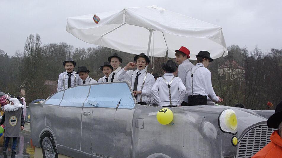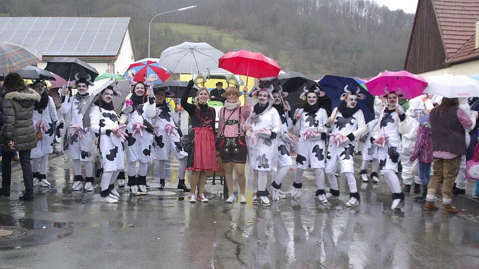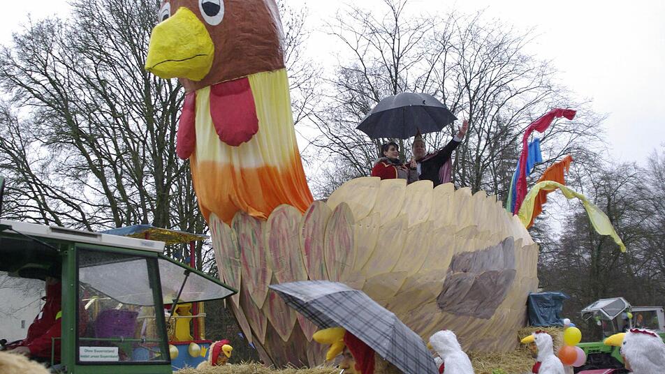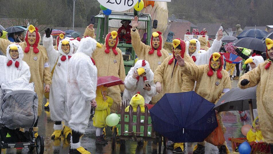 Die Faschingsfreunde bewältigen ihren mit 23 Wagen und Fußgruppen bestückten Rosenmontagszug mit "Personal" aus dem eigenen Ort.