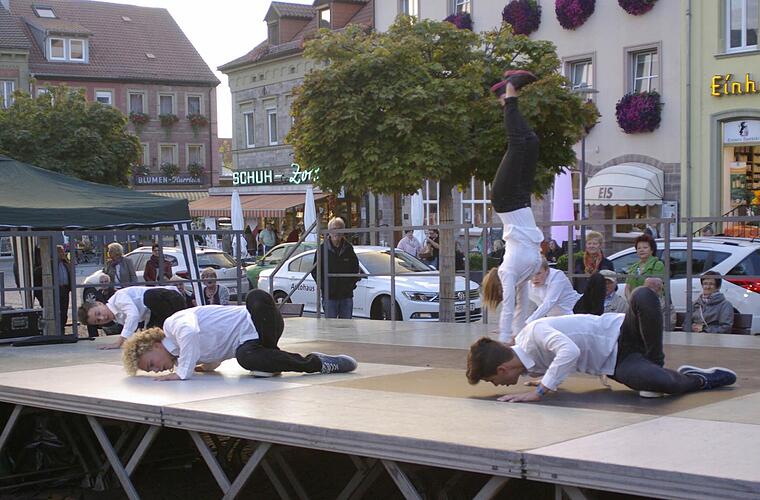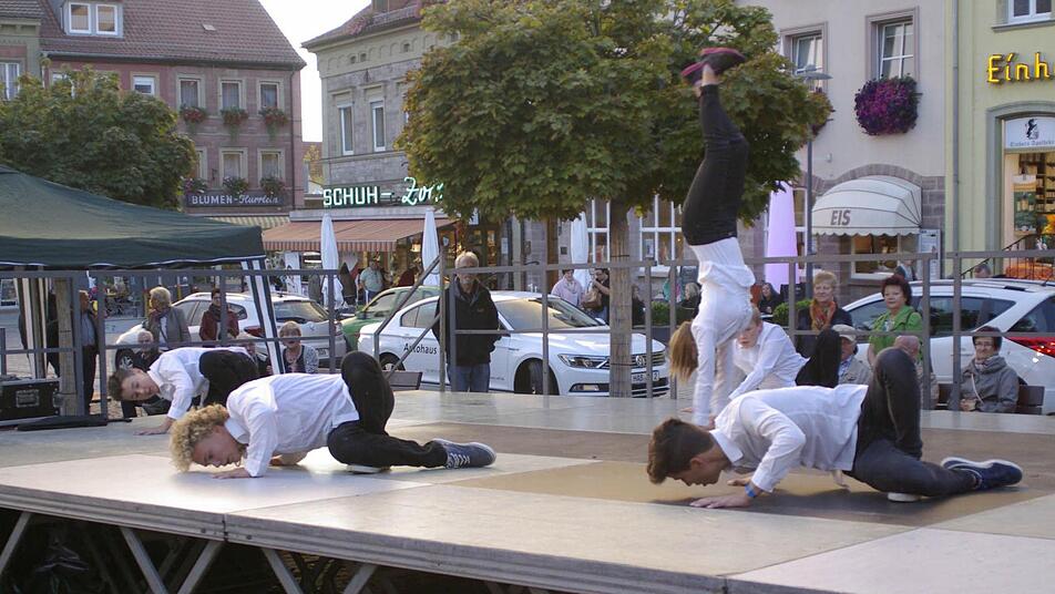 Das galt auch für den Außenbereich. Am Marktplatz heizte DJ Peter G. mit Oldies und Hits ein. Moderator Martin Dorn von "Primaton" lieferte professionelle Ansagen zum Beispiel für die deutschen Breakdance-Meister im Junioren-Bereich, die Gruppe "Lunatics" aus Schweinfurt, oder die Orient-Tänzerinnen von Christiane Aul.