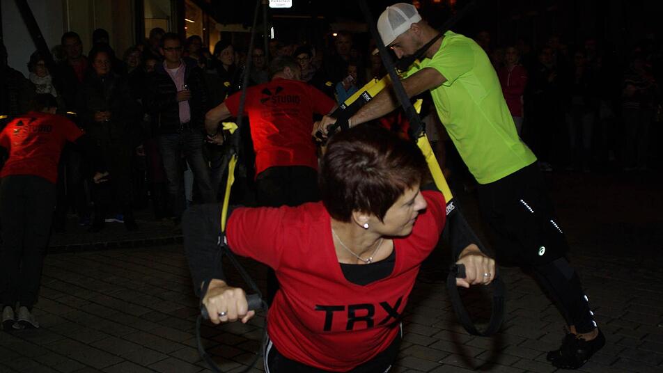 Show hielt auch Dieter Hohmann vom gleichnamigen Sportgeschäft in der Kissinger Straße bereit. Mit "Firlefanz" präsentierte sich ein Jongleur-Duo mit Feuerfackeln und Lichtkugeln. Die Gymnastikgruppe des Reha-Centers Thums warb für ein spezielles Training mit Suspension-Bändern.