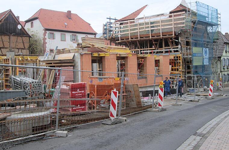 Architekt Alexander Albert gab zuvor einen detaillierten Einblick in Form eines Sachstandsberichts einschließlich Dia-Aufnahmen, die den Baufortschritt zeigten, aber auch die Schwierigkeiten aufdeckten - nicht zuletzt die Beengtheit in der Baustelle an der direkt angrenzenden, vielbefahrenen Hammelburger Straße. Wie der Planer berichtete, habe er die Zusage der ausführenden Firma Heil für die Fertigstellung des Rohbaus bis Ende November. "Etwa Ende März ist das Gebäude dann dicht", schätzte er.