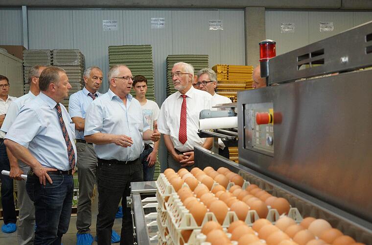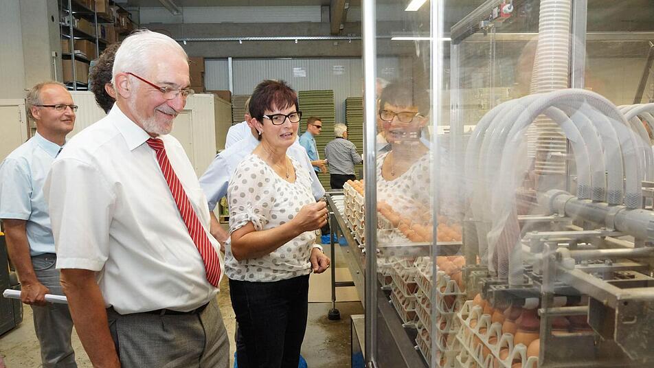 Dass das Tierwohl ein Thema der Zeit ist, findet Beinhofer. "Die Verbraucher erwarten es." Doch dadurch entstünden "neue Zielkonflikte, auf die wir reagieren müssen", fasst er später beim Abschluss der Rundfahrt im Weingut Ruppert in Hammelburg zusammen.