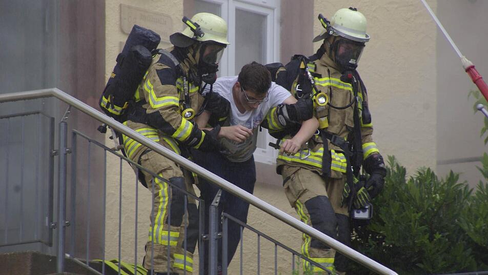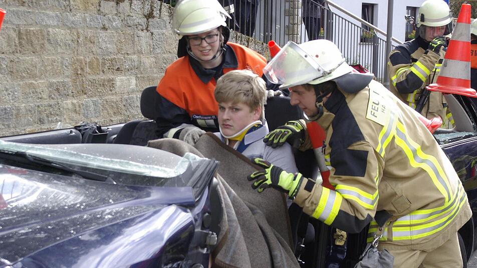 Der alte Schlagertitel "Hurra, hurra, die Schule brennt", wäre bei dem angenommenen Fall so Manchem im Halse stecken geblieben: Bei einer Musikprobe ist im Obergeschoss der Alten Schule ein Brand ausgebrochen, so das fiktive Szenario. Drei bis fünf Personen waren eingeschlossen. Und dann setzte die Feuerwehr bei ihrer Demonstration noch eines obendrauf: Unter den vielen Schaulustigen soll es zu einem Verkehrsunfall mit einer eingeklemmten Person gekommen sein, so die Annahme.