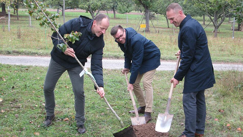 Doch nicht nur der Schnitt auch die Wertschätzung und -schöpfung sowie die Aufwertung des Kulturlandschaftspotenzials "Streuobst-Wiese" und der Einsatz für den Erhalt der Lebensräume von mehr als 5000 Tier- und Pflanzenarten soll ins Bewusstsein der Menschen rücken. Ebenso Kenntnisse über alte Baumsorten und der Erhalt und die Ergänzung lückenhafter Bestände. Als Vorreiter plant die Allianz die Pflanzung von 100 Bäumen. Der erste wurde vor Ort an der Schwedenschanze eingegraben.