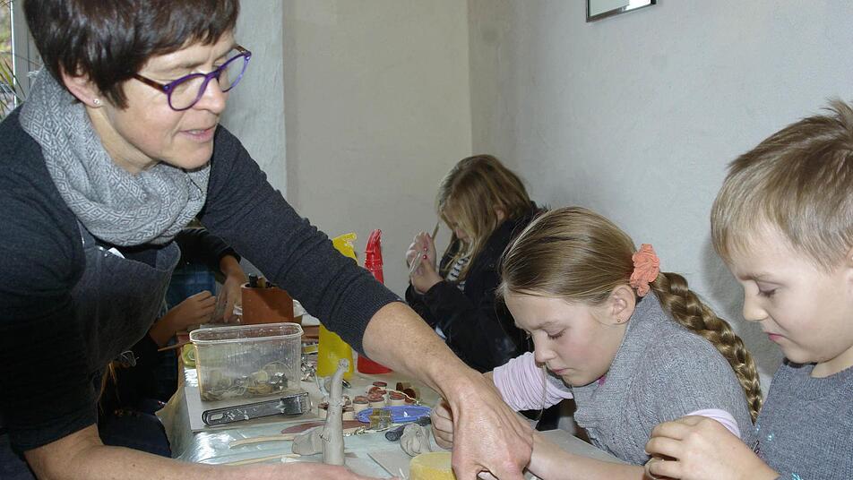 Die Freiwillige Feuerwehr, die schon jetzt integriert ist, soll künftig Veranstalter sein. Die OGV-Mitglieder unterstützen sie dabei nach Kräften. Insgesamt 16 Aussteller belebten den Schlosshof mit Gewürzen und Handwerkskunst, Schmuck, Laubsäge-, Drechselarbeiten und der Phantasiewerkstatt Töpfern, in der Karin Eckert Kindern die Möglichkeit zum kreativen Umgang mit diesem Werkstoff gab.