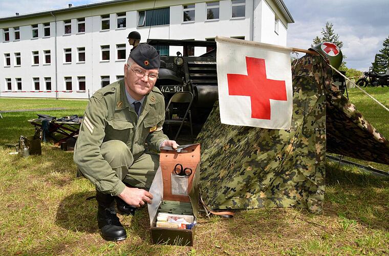 Auch ein Zelt hat Höfer, der im zivilen Leben Krankengymnast ist, auf der Wiese aufgebaut und einige fast schon antike Dinge mitgebracht, die heut nicht mehr verwendet werden, wie etwa das Hindenburglicht und einen Helm mit Kalotte. Bleibt schließlich noch die Frage, warum er eine Krawatte trägt. "Die gehörte damals zur Uniform eines jeden Soldaten dazu. Sie war kein Schmuckelement, sondern ein ersthelferisches Instrument. Man konnte sie prima zum Abbinden verwenden", so der Hobbyhistoriker.