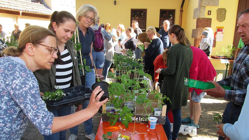 Im Rineckerhaus in Hammelburg läuft es gemütlicher ab, doch recht gut, wie Ute Merz, die Vorsitzende des Gartenvereins Hammelburg bestätigt. "Es wurde nichts Spezielles für diesen Tag gezüchtet, jeder brachte, was er übrig hat", stellt sie fest. Unter Zimmer-, Beet- und Wildpflanzen können die Besucher aussuchen, was gefällt. Beeindruckend ist das Ambiente des historischen Bauernhauses aus dem 17. Jahrhundert, das selbst über einen wunderschönen Garten verfügt, den die Besitzerin Maria Rinecker anlegte und pflegt.