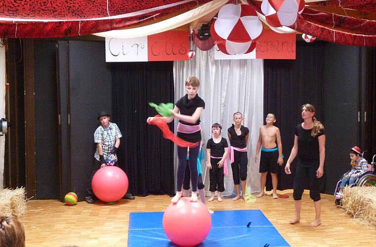 Mit Ausdauer einstudiert Mit viel Begeisterung haben die Schüler aller Altersstufen die Zirkusnummern in einem dreiwöchigen Projekt in Zusammenarbeit mit dem Zirkus "Luna" aus Langendorf vorbereitet. Mit viel Freude und guter Laune wurden hierbei die motorischen und sensorischen Fähigkeiten der Schüler intensiv gefördert.
