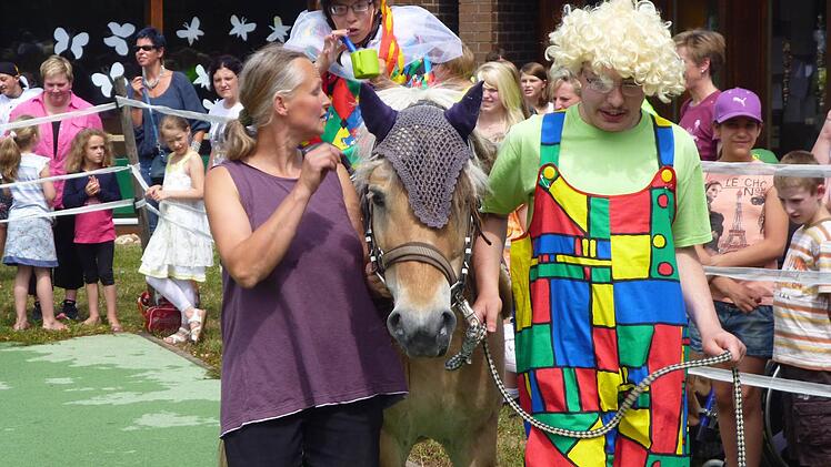Anschließend jonglierten sich die "10 Ballotuchos" mit Bällen und Tüchern in die Herzen der Zuschauer. Auf der Freilichtbühne gab es Dressur- und Jonglierübungen, sowie akrobatische Kunststücke auf dem Rücken von Therapiepferd Joschi.