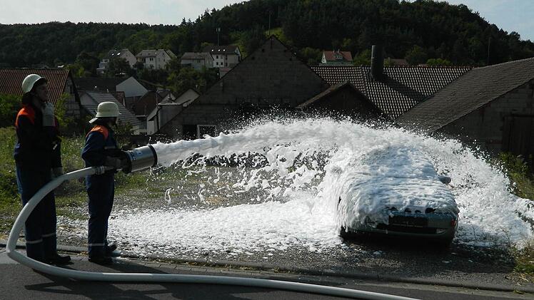 Die Nacht danach war kurz, denn bereits am frühen Morgen musste ein brennender Strohhaufen bei den Aussiedlerhöfen gelöscht werden. Nachdem diese Aufgabe gemeistert war, gab es ein kräftiges Frühstück für die ermatteten Jungfeuerwehrleute. Der anschließende Wartungsdienst an Fahrzeugen und Geräten wurde jäh beendet, denn plötzlich galt es, ein brennendes Auto zu löschen. Routiniert und professionell packten die Floriansjünger das Fahrzeug in einen dicken Schaumteppich.