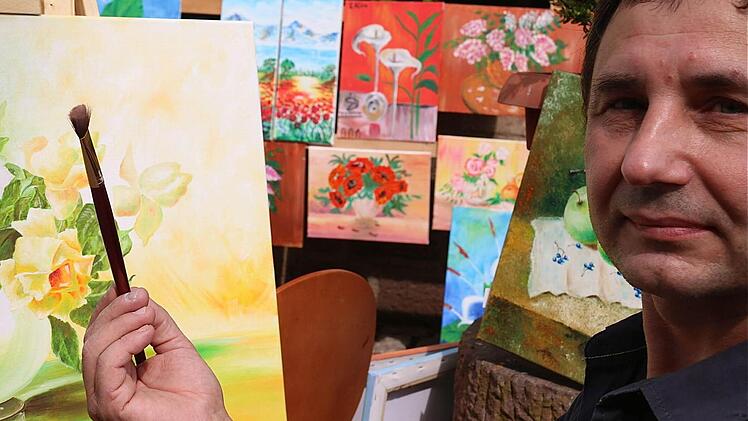 Hobbymaler Wladimir Renner hat Spaß am schönen Bild. Schon 1993 ist er aus der russischen Stadt Tscheljadinsk (Ural) nach Hammelburg gezogen. Seine Werke waren heuer erstmals auf dem Museumsinselfest zu sehen.