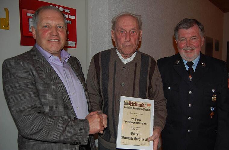 Eine einmalige Ehrung gab es bei der Jahreshauptversammlung der Feuerwehr. Der 89-jährige Joseph Schlereth wurde für 75-jährige Mitgliedschaft ausgezeichnet, seine Mitarbeit als beispielhaft herausgestellt.