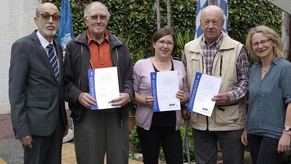 Seit drei Jahrzehnten halten Johann Hirsch und Karl Schottorf aus Diebach dem VdK die Treue. Auch sie erhielten die Urkunde und die Ehrennadel.