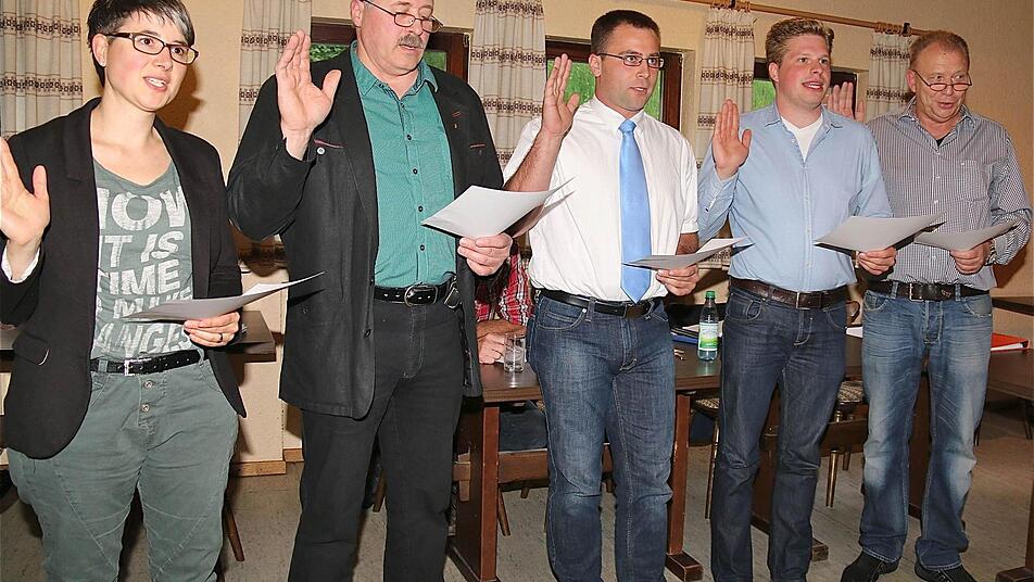 Weil so viele Zuhörer kamen, wurde die konstituierende Gemeinderatssitzung am Montag in den Clubraum der oberen Etage des Mehrzweckgebäudes verlegt. Nicht nur der neue Bürgermeister August Weingart (CSU/ WG) sondern auch dessen Stellvertreter, Zweite Bürgermeisterin Gabriele Dehmer (SPD) und Dritter Bürgermeister Johannes Büttner (CSU/ WG) sowie die übrigen neuen Räte legten ihre Diensteide öffentlich ab.