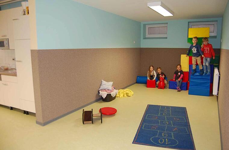 Neben einem Intensivzimmer, in dem sich das Personal noch eingehender mit den Kindern beschäftigen kann, ist jetzt ein großzügiger Bewegungsraum vorhanden. Spaß macht dort den Kleinen besonders das Bauen mit den neuen Großbau steinen. "Jetzt können wir hier so richtig toll spielen", freut sich der kleine Max. Auch wird in den nächsten Tagen dort noch eine Kletterwand zum Turnen eingebaut. Verlegt in den neuen Bereich wurde der Bürotrakt der Leiterin.