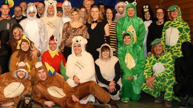 Zwischen Zebras, Eisbären, Eseln und Fuschter Eulen führte Marco Kippes durch die bunten Darbietungen. Gespickt mit Ironie und Witz plauderte Matthias Wahler aus dem Nähkästchen seines Heimatortes. Die fünfte Jahreszeit bei den Euls kam jetzt so richtig ins Rollen. Mit dem musikalischen Blick in die Vergangenheit von Arnulf Pfülb, der mit seiner Gitarre zum "Singen und Lachen" aufforderte, sorgte der Lokalmatador für schallendes Gelächter.