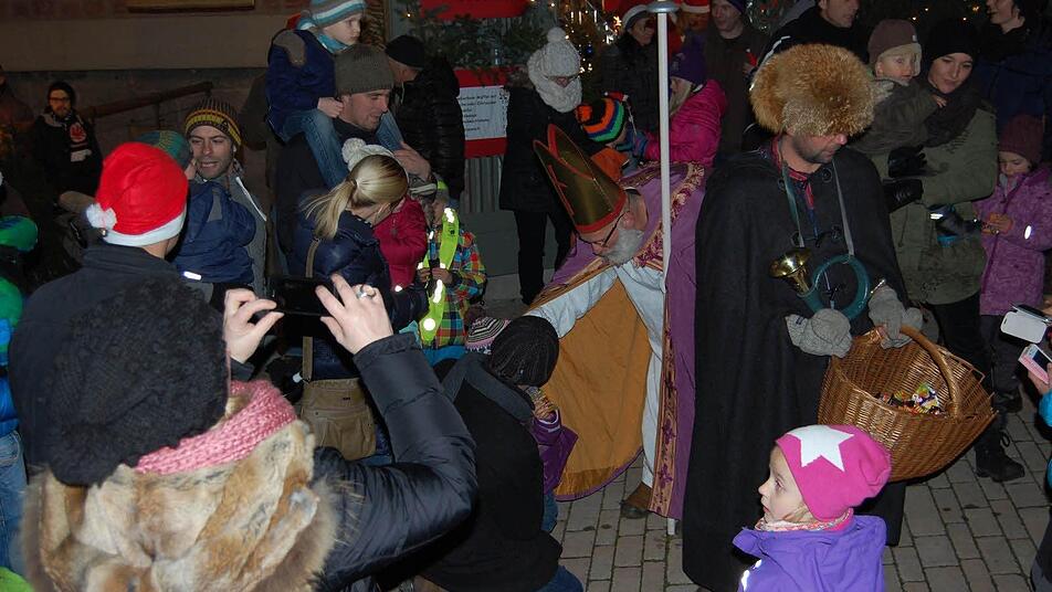 Diesmal kam er in der Gestalt des Bischof Nikolaus (Thomas Schuhmann) und zeigte sich mit aufmunternden Worten von seiner freundlichen Seite. Ständig umringt war auch sein treuer Helfer, Knecht Ru precht (Stefan Henz). Er hatte für die Kleinen einen großen Korb mit Süßigkeiten mitgebracht. Viele Besucher lobten die schöne Atmosphäre, die mitten im Dorf entstanden ist. Theresia Wehner aus Oberthulba zeigte sich überrascht, was aus dem ehemaligen Pfarrhaus und Pfarrgarten geworden ist. Sie erinnert sich gerne an ihre Hassenbacher Kinderzeit zurück: "Oft war ich mit meiner Oma in dem Pfarrhaus zum Spilkgehen oder einfach zum gemeinsamen Stricken, wie es früher in den Dörfern üblich war. Heute kann man hier toll feiern."