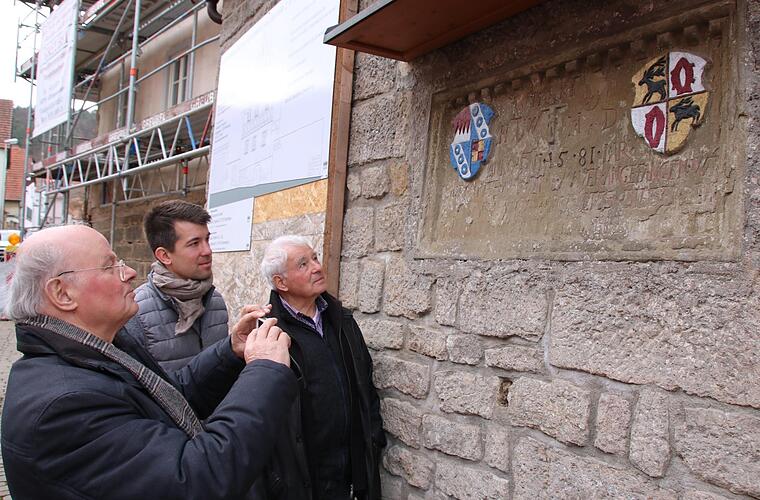 Der Name Warmuth ist in Sulzthal seit Jahrzehnten ausgestorben. In Stein gemeißelt gibt es allerdings zahlreiche Hinweise: Etwa eine Sandstein-Tafel aus dem Jahr 1581, eines der ältesten steinernen Zeugnisse in der Region überhaupt, die auf den Bau der Dorfmauer hinweist: "Mit Gottes Hilf dise Mauer angefangen war durch Hansen Warmut Schultes dieser Zeit sampt einer gantzen Gemein in Sonderheit" war darauf bis vor wenigen Jahren gut zu lesen. Die Tafel litt allerdings, weil sie vor Jahrzehnten von einer Scheunenwand in eine Bruchstein-Mauer versetzt wurde. Ein Foto in Originalgröße direkt daneben dokumentiert allerdings den Zustand von vor einigen Jahren.