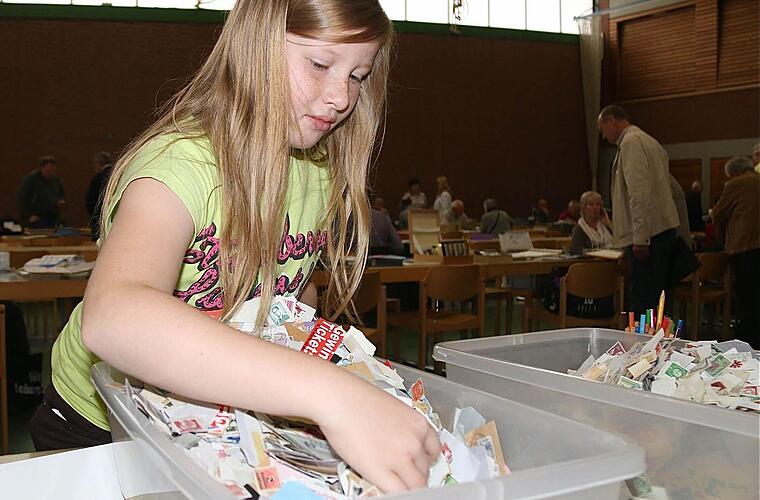 Mit ihren Eltern aus Hildburghausen war Cornelia angereist. "Das Briefmarkensammeln ist eher nicht der Fall bei meinen Alterskameraden", sagt sie. In ihrer Schulklasse sei sie die einzige Sammlerin. "Manche Briefmarken sehen schön aus, am liebsten habe ich die Tier- und Pflanzenmotive in meinen vier Alben", verrät Cornelia. Ihr Favorit seien die Delphine.