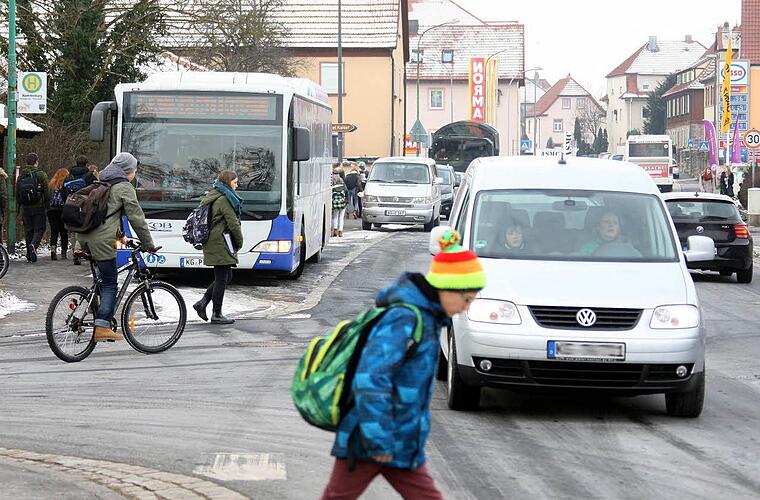 13 Uhr, Kissinger Straße in Hammelburg. Hunderte Kinder und Jugendliche verlassen nach dem Gong das Gymnasium und die Realschule. Die meisten von ihnen drängen sich nun an den Bushaltestellen in der Von-der-Tann-Straße und in der Kissinger Straße. Die Busse des Kreisomnibusbetriebs (KOB) und des Omnibusverkehrs Franken (OVF) treffen im Minutentakt ein. Tagtäglich bietet sich den Fahrerinnen und Fahrern das gleiche chaotische Bild: Schüler drängeln, wollen Erste beim Besteigen des Busses sein und sich die besten Sitzplätze sichern.