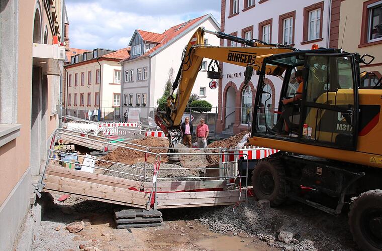 Vom Marktplatz kommend wurde zunächst die linke Seite aufgegraben. "Eine Seite bleibt immer begehbar, und für die Erreichbarkeit aller Geschäfte ist gesorgt", betont Mohr. Am Marktplatz und vor dem Bürgerspital gebe es zudem Ladezonen für Lieferanten.