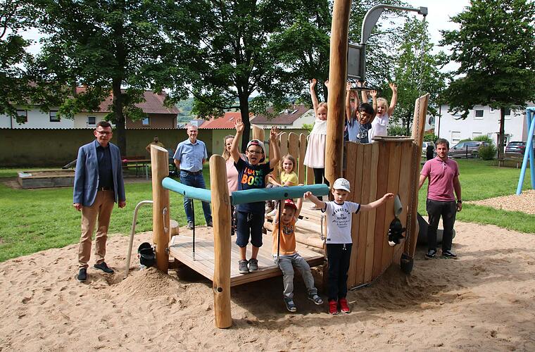 Laut Bürgermeister Warmuth wurde die Erneuerung des rund 1400 Quadratmeter großen Spielplatzes aus den 1960er Jahren gemeinsam mit Eltern und Kindern geplant. Die Stadt habe ein Spielplatz-Konzept ausgearbeitet, in dem festgelegt sei, wann welcher Spielplatz an der Reihe ist. "Da haben wir noch viel zu tun, aber wir haben auch schon viel gemacht", sagte Warmuth. Die Kosten für Material und den teilweisen Aufbau der neuen Geräte durch eine Firma bezifferte der Bürgermeister auf rund 75 000 Euro. Zudem half das Team von Bauhofleiter Arnold Zier mit, setzte Quadersteine, um die Böschung abzufangen und mehr ebene Fläche zu schaffen, hob Fundamente aus und bereitete die Flächen für Hackschnitzel als Fallschutz vor.