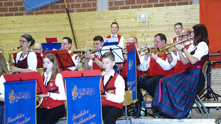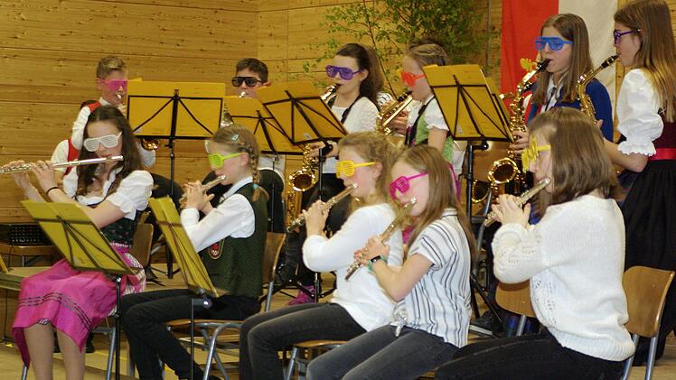 Zu den "Fuschter Musikanten", der Musikvereinigung Machtilshausen und dem Musikverein Langendorf gesellt sich ein viertes Ensemble, die Jungmusikanten der drei Kapellen, die Bernd Uebel, der Fuchsstädter Dirigent, in gemeinsamen Proben jeweils vor einem Konzert oder Projekten anberaumt. Diesmal startete er mit 19 Jungmusikern, die ihr Können zeigen wollten, unter anderem mit der Titelmelodie aus dem Film "Die Eiskönigin", "Let it go" und dem letzten Jedi, der Filmmelodie aus der Star-Wars-Saga. Per bunten Party-Gitterbrillen verbreiteten sie noch muntere Fröhlichkeit nach Pharrell Williams "Happy".