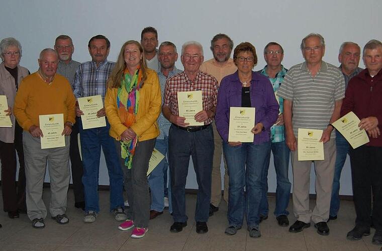 Eine Urkunde für 25 Jahre Treue erhielten Edgar Dunkel, Karlheinz Eyrich, Liselotte Glück, Marco Metz, Manfred Reuß, Helga Schmitt, Gerald Straub, Marion Straub, Reinhold Walter, Johanna Wehner und Nicky Wiegand. Für 30 Jahre wurden Michael Freisinger, Armin und Tobias Vogler ausgezeichnet. Die Urkunde für 35 Jahre erhielten Bernd Günther, Ilse Hartmann, Christa Groß, Irma Henz, Mathilde Nürnberger, Anita Straub, Barbara Straub, Gertrud Straub, Karin Wehner, Gertrud Wiegand, Helma Wießner, Oswald Straub und Ingeborg Rost. Für 40 Jahre ausgezeichnet wurde Hubert Schenk.