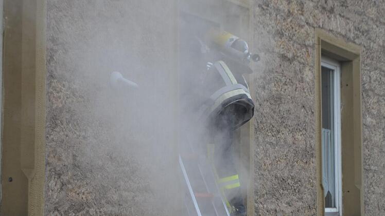 Anschließend wurde der eingeklemmte Fahrer mittels Schere - Spreizer Kombigerät der Feuerwehr Mariendorf herausgeschnitten und ebenso dem Rettungsdienst übergeben, die Personen waren natürlich nur Übungspuppen. Ebenso sicherte die Feuerwehr Mariendorf mit ihrem Fahrzeug "Logistik Öl" den angrenzenden Bach gegen auslaufende Flüssigkeiten. Nach der erfolgreich absolvierten Übung gab es Mittagessen am Feuerwehrhaus. Jedoch ließ der zweite "Einsatz" nicht lange auf sich warten. So hieß diesmal das Stichwort: Brand im Jugendzentrum mit zwei vermissten Personen. Die Freiwillige Feuerwehr Machtilshausen ging den Vorfall mit zwei Atemschutzgeräteträgertrupps an zwei Angriffswegen an. Die Suche nach den vermissten Personen in dem völlig verrauchten Jugendraum gestaltete sich als sehr realitätsnah.