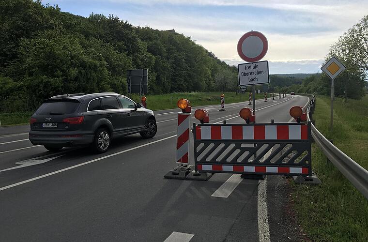 Große Ratlosigkeit herrschte am Dienstagabend an der Lagerkreuzung unterhalb des ehemaligen Klosters Altstadt: Die Bundesstraße in Richtung Gemünden wurde gesperrt, lediglich die Durchfahrt nach Obereschenbach war frei gegeben, aber es war noch keine Umleitung ausgeschildert. Lkw- und Pkw-Fahrer stiegen mitten auf der Kreuzung aus und diskutierten darüber, was die beste Umleitung ist. Wegen der Erneuerung der Fahrbahn bleibt die Bundesstraße zwischen Obereschenbach und der Landkreisgrenze im Bereich der so genanten Hainbuche fast vier Wochen lang gesperrt. Die Ausweichstrecken - entweder südlich um den Truppenübungsplatz herum oder durch Waizenbach - bedeuten einen Umweg von rund 15 Kilometern. Autofahrer in Richtung Westen müssen also mindestens eine Viertelstunde mehr Zeit einplanen.