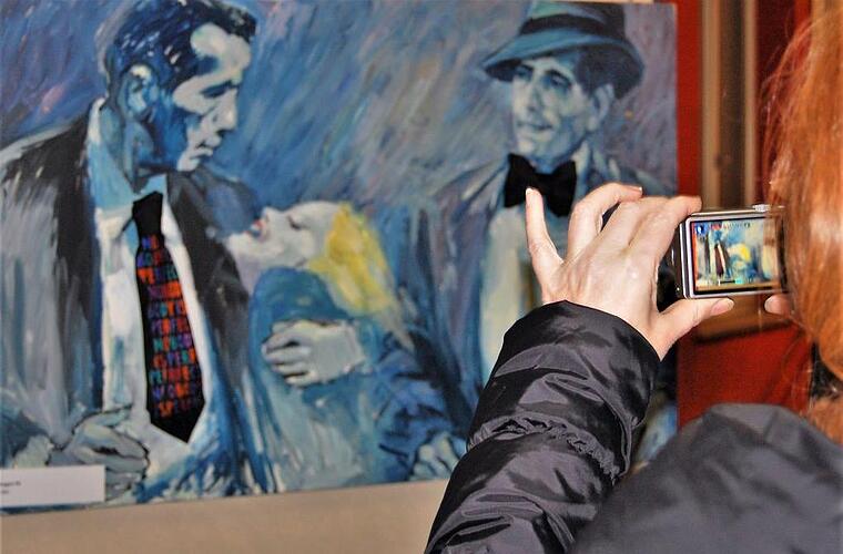 Die Verbindung von Kunst und Kommerz war für den Unternehmer nichts Negatives: Seine Freude an Höflings Malerei nutzte Halbritter sogar auf Messen zur auffälligen Präsentation seiner Produkte. Die Ausstellung zeigt beispielhaft einige Motive mit Schauspieler Humphrey Bogart, dessen Hemd collagenartig eine modische Krawatte aus Halbritters Fertigung schmückt.