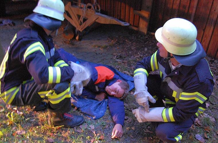 Bei der Großübung der Feuerwehren in Hassenbach trainierten rund 90 Floriansjünger den Ernstfall. Das Szenario sah einen Scheunenbrand mit zwei Vermissten vor.