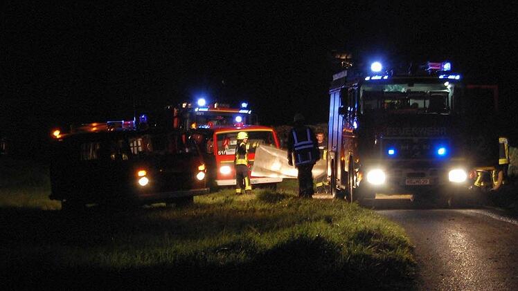 Erschwerende Umstände der Übung waren zum einen der angrenzende Wald und zum anderen die Dunkelheit. Die Wehrmänner konnten nur unter Scheinwerferlicht arbeiten. Doch insgesamt liefen Aufbau der Leitung und Rettungsaktion problemlos ab. Der erste Löschangriff konnte mit Wasser aus den Fahrzeugen erfolgen. Danach stand schon in kurzer Zeit auch genügend Wasser aus der Schlauchleitung zur Verfügung.