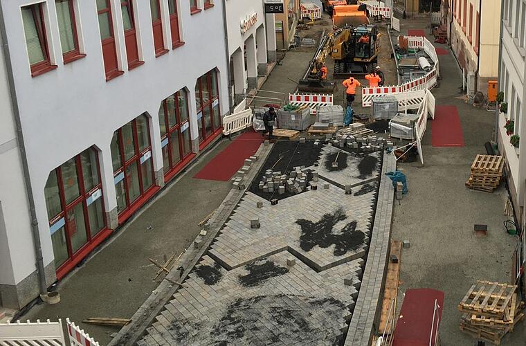 Zu Verzögerungen habe Ende des vergangenen Jahres vor allem ein Corona-Fall bei den Pflasterern geführt. Straße und Gehweg werden komplett mit großen Naturstein-Quadern ausgelegt. Das aufwendige Fischgrät-Muster erfordert gerade im Kurvenbereich viel Handarbeit und viele Anpassungen. "Wenn die Pflasterarbeiten gut weiterlaufen, dürfte der erste Bauabschnitt in fünf bis sechs Wochen fertig sein", sagte Mohr.