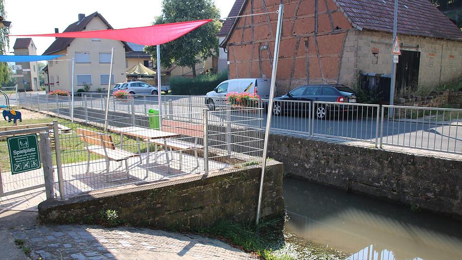 Der Hammelburger Stadtteil Untereschenbach überrascht durch einen zentral gelegenen Spielplatz mit Fußballfeld ganz in der Nähe.
