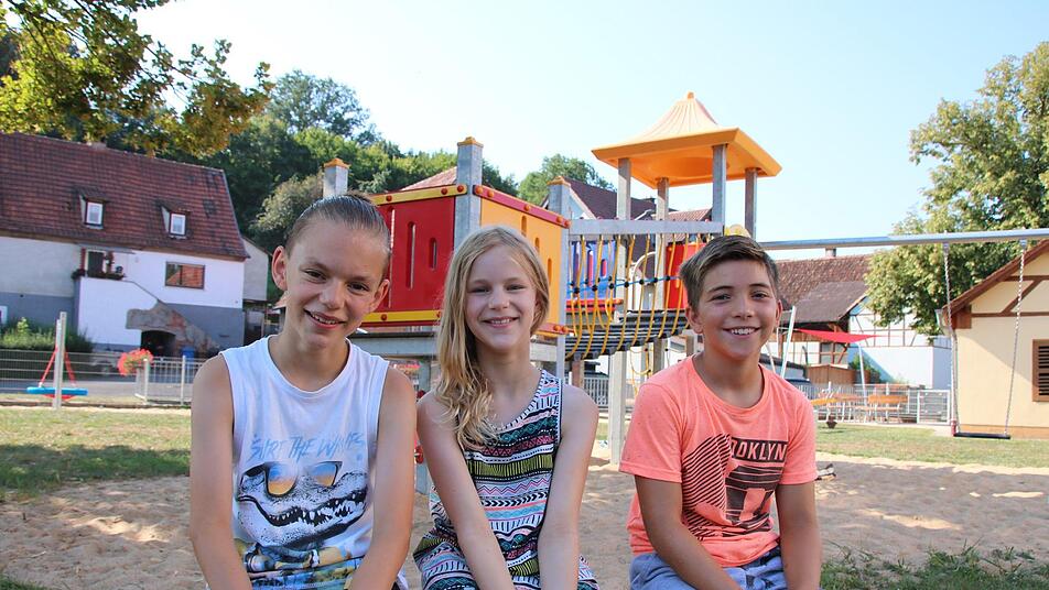 Kann man den Platz überhaupt mit den anderen vergleichen? Ist der Ort nicht viel zu klein? Auf dem Weg nach Untereschenbach rätselten unsere Spielplatz-Tester David (9), Elisabeth (11) und Johann (13), was sie in dem Hammelburger Stadtteil wohl erwartet. Am Ende war die Überraschung groß: Das Dorf mit rund 500 Einwohnern hat mitten im Altort einen Spielplatz mit einem abwechslungsreichen Mix aus älteren und ganz neuen Spielgeräten, einem Zugang zum Eschenbach und einem 60 Meter langen Fußballfeld keine hundert Meter weiter in Richtung Saale. Elisabeths Bilanz: "Echt okay für den kleinen Ort."