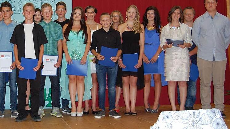 "Ich bin stolz über die tollen Ergebnisse und ich werde euch vermissen", so Klassenlehrerin Fiona Wehner. Lob für die Lehrerin gab es in der Abschlussrede der beiden Schülersprecher Anja Winkler und Fabian Diemer.
